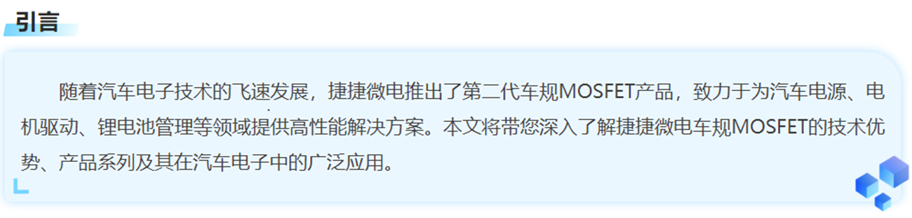 捷捷微電在封裝技術(shù)上不斷推陳出新,推出了多種先進(jìn)封裝形式,如DFN2020、PDFN5x6、PowerJE?等,滿足不同應(yīng)用場(chǎng)景的需求。特別是在車(chē)載應(yīng)用中,捷捷微電的封裝技術(shù)能夠有效提升散熱性能,確保器件在高溫環(huán)境下穩(wěn)定運(yùn)行。電子.png)